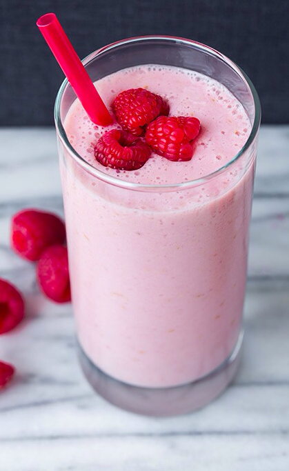 1 cup liquid ( i used soymilk) 3 scoops vanilla protein powder a handfull spinach 1 cup frozen fruits (raspberries, blueberries, mango, banana, ...)